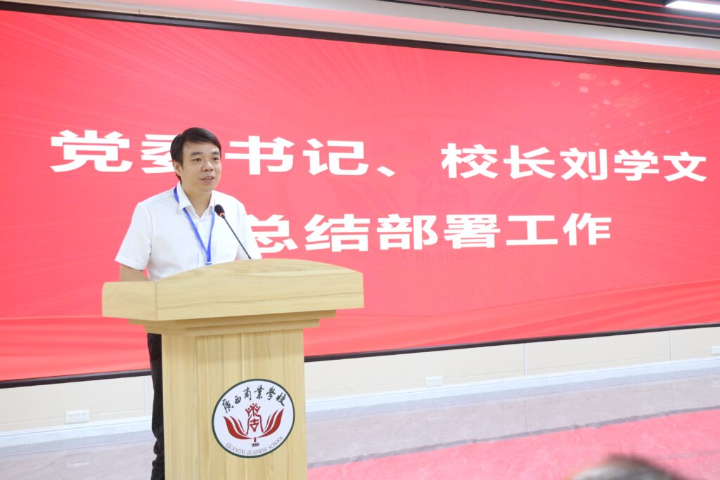 最后,学校党委书记、校长刘学文作总结讲话。他全面总结了学校2025年暑假期间的各项工作,对暑假期间坚守岗位、辛勤工作的教职工表示衷心感谢。他将新学期重点工作提炼为“一”、“三”、“五”:“一”是要坚定一个信心,守护一份荣誉;“三”是要树牢三大意识,即树牢规范意识、制度意识,树牢创新意识、进取意识,树牢底线意识、安全意识;“五”是要做好五项工作。希望大家在新学期能够以更加饱满的热情、更加务实的作风投入到工作中,为培养更多高素质技能型人才、推动学校高质量发展而努力奋斗。?