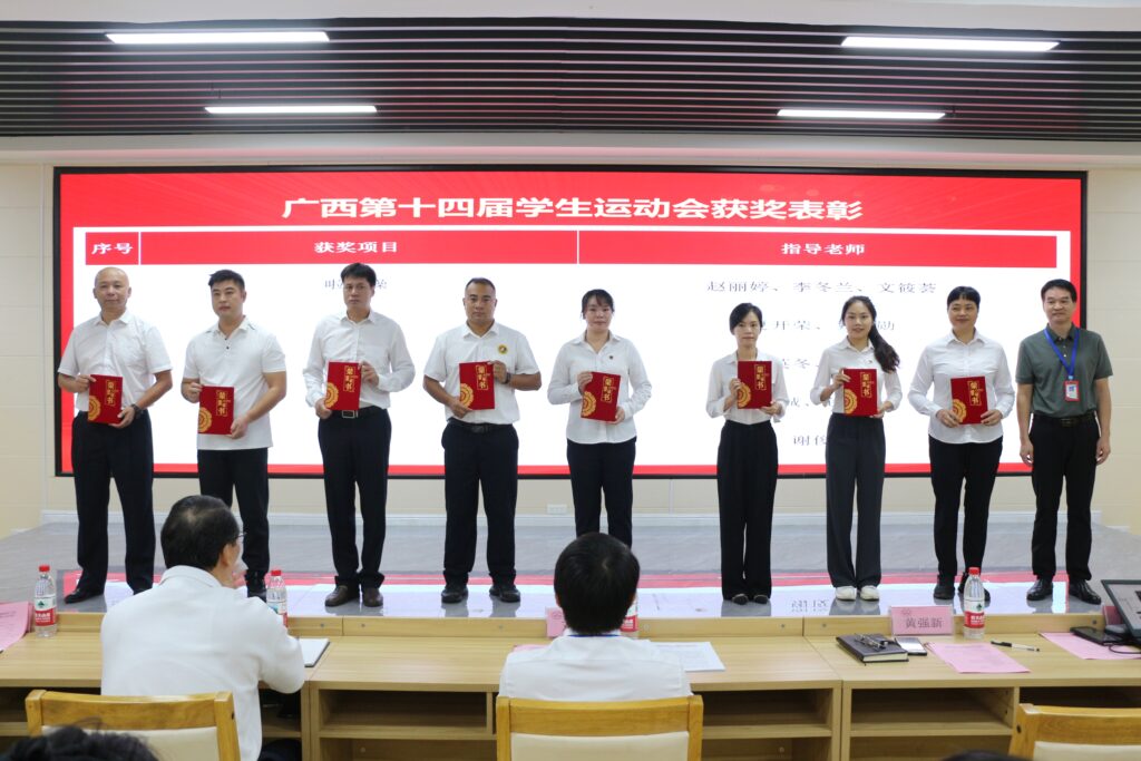 大会伊始,学校党委副书记、纪委书记、副校长农安航首先宣读了学校党委书记刘学文的任命文件。随后,副校长黄强新宣读了广西第十四届学生运动会、柳州市课题结题和自治区教师教学比赛获奖的表彰文件。接着,对先进团队和个人进行了隆重表彰。
