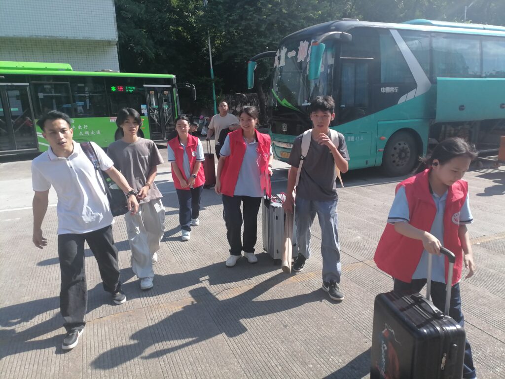 为方便新生顺利到校,校外接待工作组的老师和学生志愿者们在柳州火车站、汽车总站、汽车南站、白沙客运站、莲花客运站等五个站点接待新生,安排新生和家长乘坐校车便捷到校。