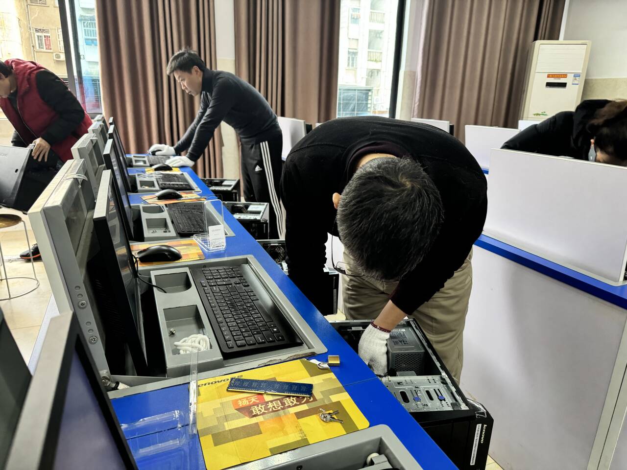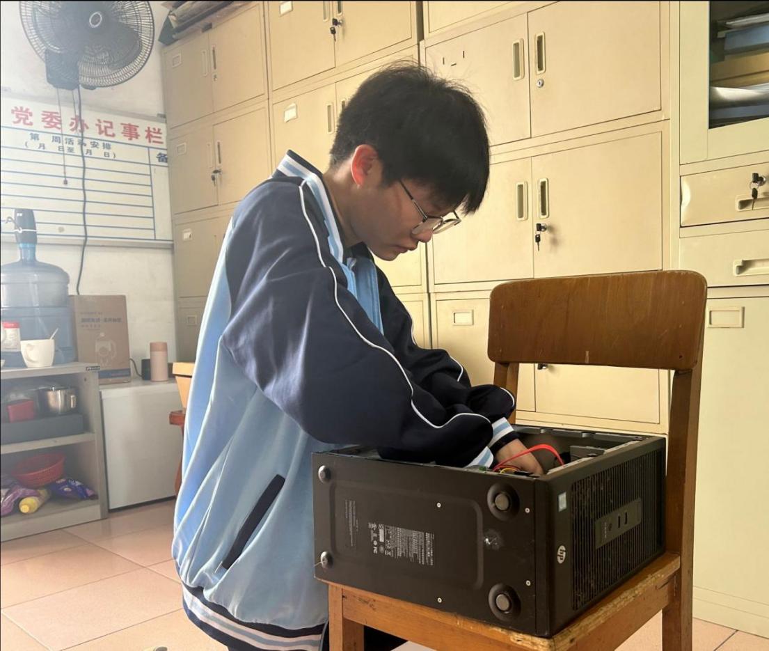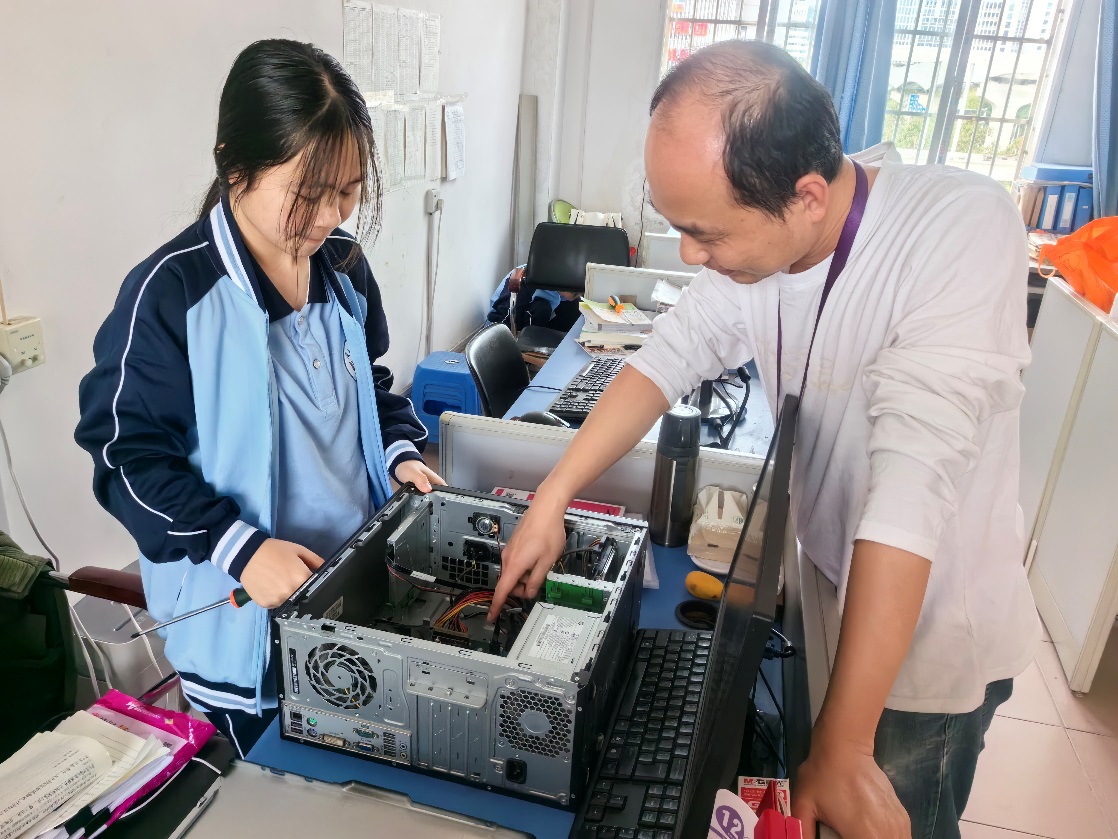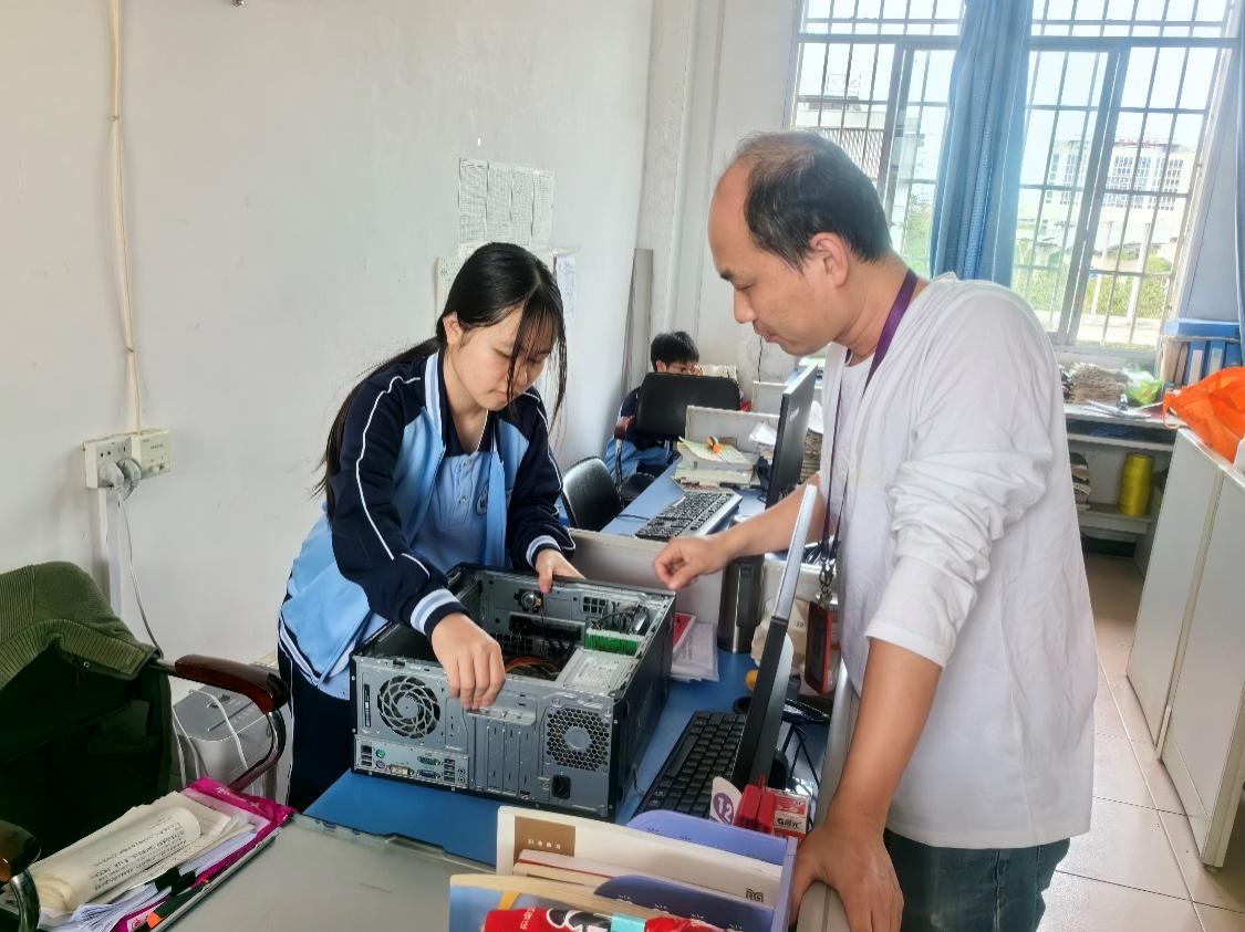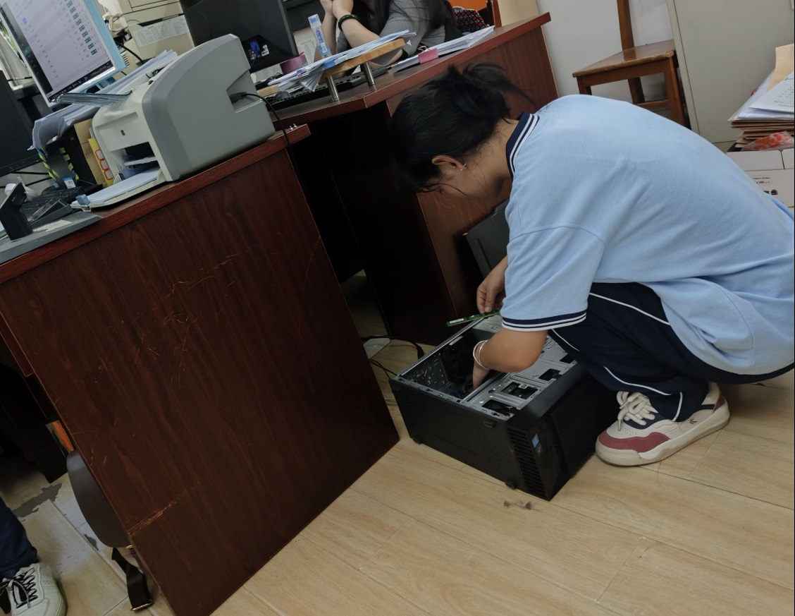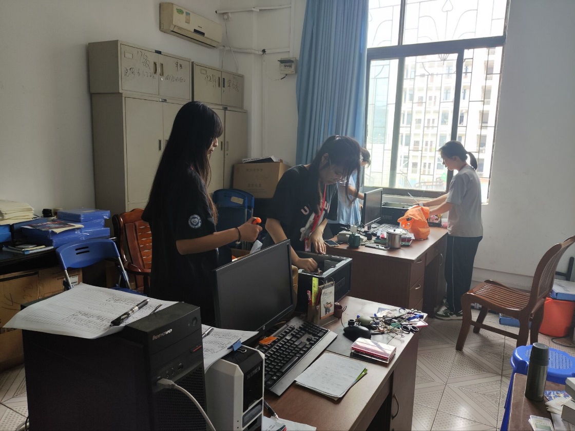 学生志愿者对教师办公室电脑进行维护