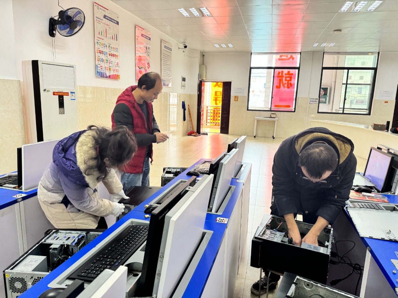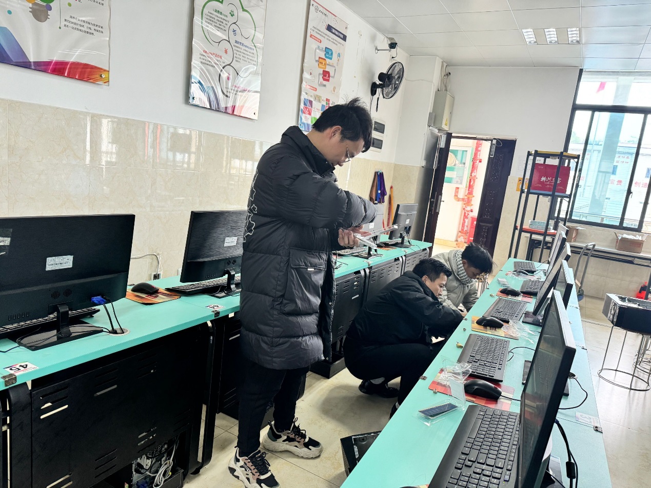商贸系教师志愿者对实训室电脑进行检修维护