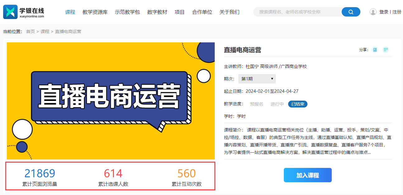 自课程开课以来应用效果显著,页面浏览量累计达21855次,目前已吸引超过600名学习者参与课程学习,10所外校单位的学生也选课学习,校外学习者超过500人。