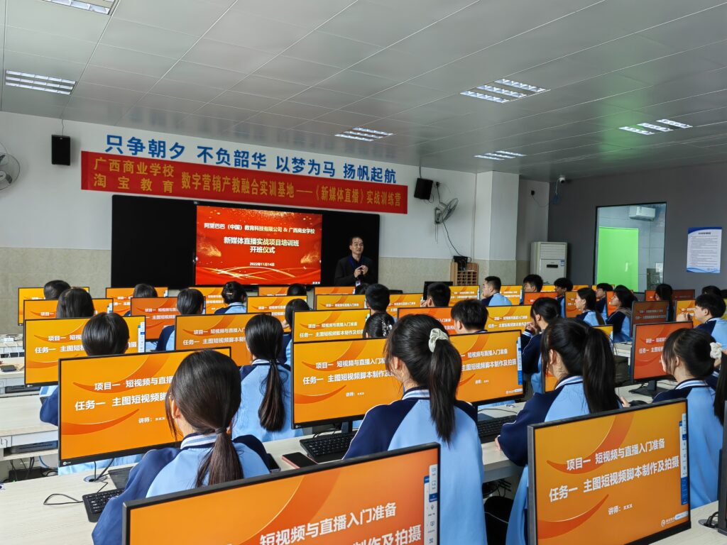 电子商务实训基地:电子商务、直播电商、市场营销实训室配备全流程模拟平台,学生可实战运营“桂货出海”项目、直播电商项目、开展新媒体营销等技能操作。