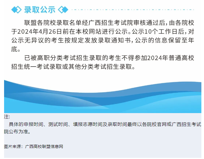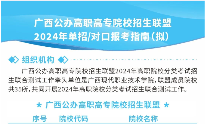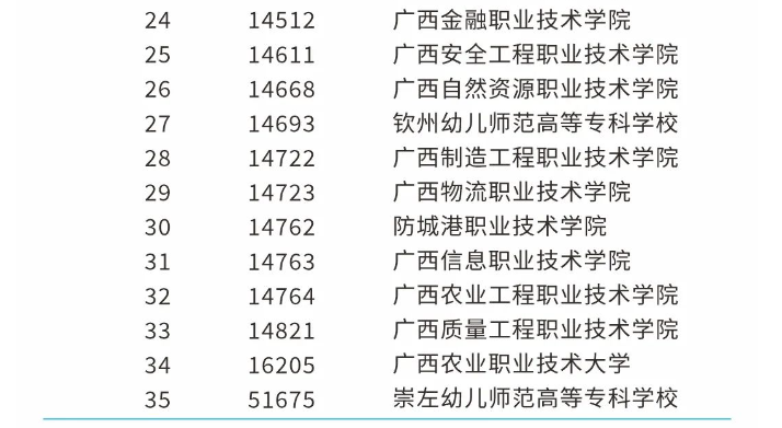 广西的高等职业教育考试招生院校包括哪些?征求意见稿中,并没有明确说明,只解释为包括高等职业学校和普通高等学校,具体名单以当年公布为准。